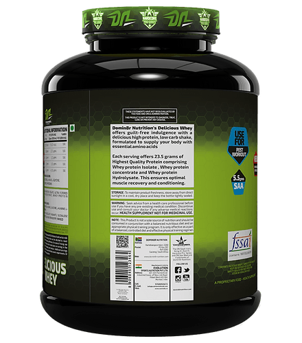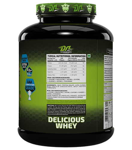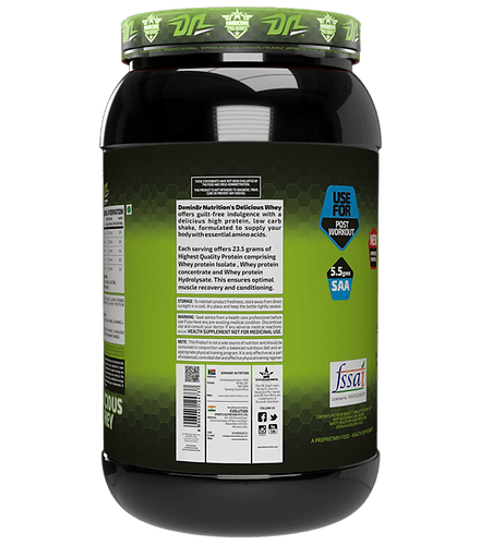 DominBr Nutrition’s Delicious Whey offers guilt-free indulgence with a delicious high protein, low carb shake, formulated to supply your body with essential amino acids Each serving offers 23.5 grams of Highest Quality Protein comprising Whey protein Isolate, Whey protein concentrate and Whey protein Hydrolysate. This ensures optimal muscle recovery and conditioning.