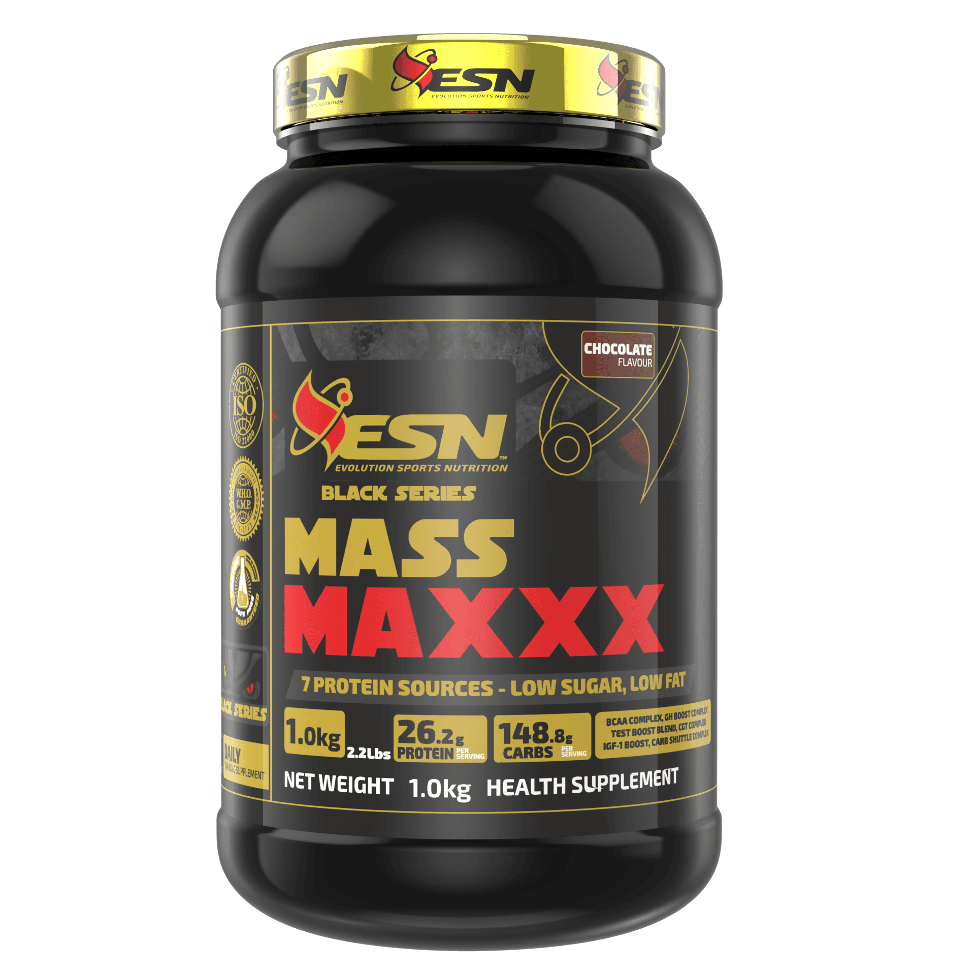 ESN Mass Maxxx is a state-of-the-art advanced product. Each serving is packed with an array of performance-enhancing ingredients such as Pro CGT Complex, Pro Bcaa Complex, Pro GH Boost Complex, Pro-Test Boost, Advanced Carb-Shuttle complex and much more.